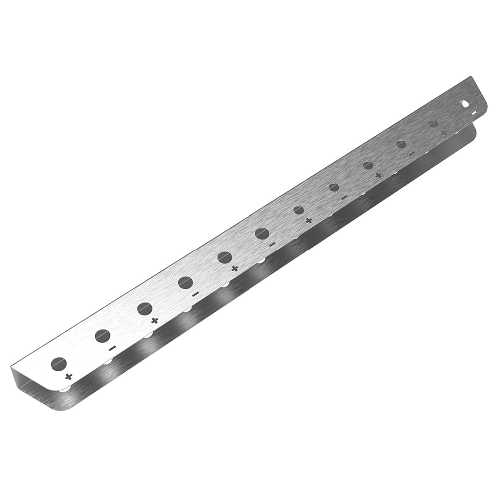 Конструкция предусматривает наклонное расположение слотов под углом 15–20 градусов, что обеспечивает удобный доступ к инструменту и предотвращает его самопроизвольное выпадение. Ширина каждого паза подобрана с учётом стандартных диаметров стержней отвёрток, с небольшим зазором для лёгкого вставления и извлечения. Для крестовых отвёрток предусмотрены специальные вырезы, предотвращающие проворачивание инструмента.