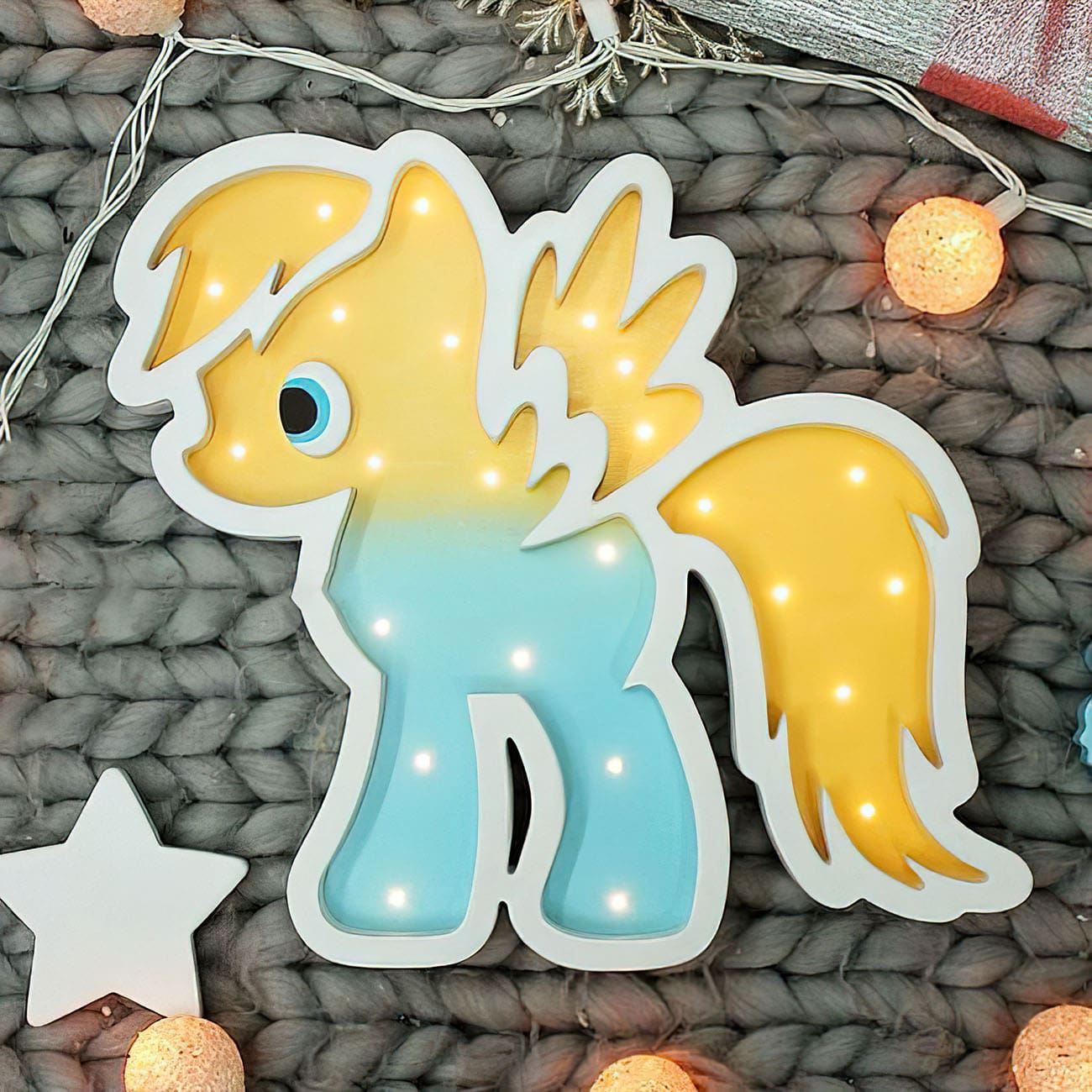 Ночник с изображением Радуги Дэш, одного из самых любимых персонажей мультфильма “Мой маленький пони”, радует яркостью и жизнерадостностью. Этот динамичный пони символизирует дружбу, приключения и весёлое настроение, что обязательно понравится вашему ребёнку.