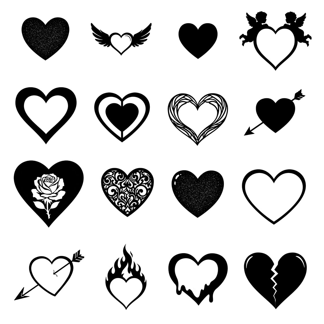- Классические формы сердец — от миниатюрных до крупных, идеально подходящих для украшений, открыток и декора.